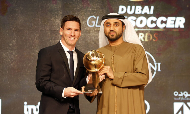 Premiazione in grande stile per Lionel Messi, che si è presentato a Dubai per ritirare il Globe Soccer Awards 2015 come “Miglior calciatore dell’anno” indossando abiti di Emporio Armani.