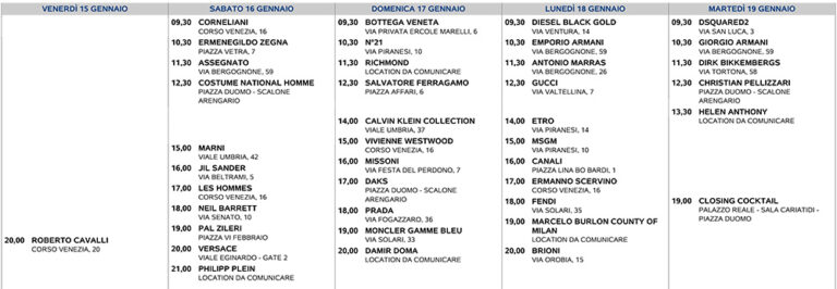 E’ stato definito il calendario delle sfilate della prossima edizione di Milano Moda Uomo, in programma dal 15 al 19 gennaio con 39 passerelle che vedono, accanto ai nomi storici, l’ingresso di…