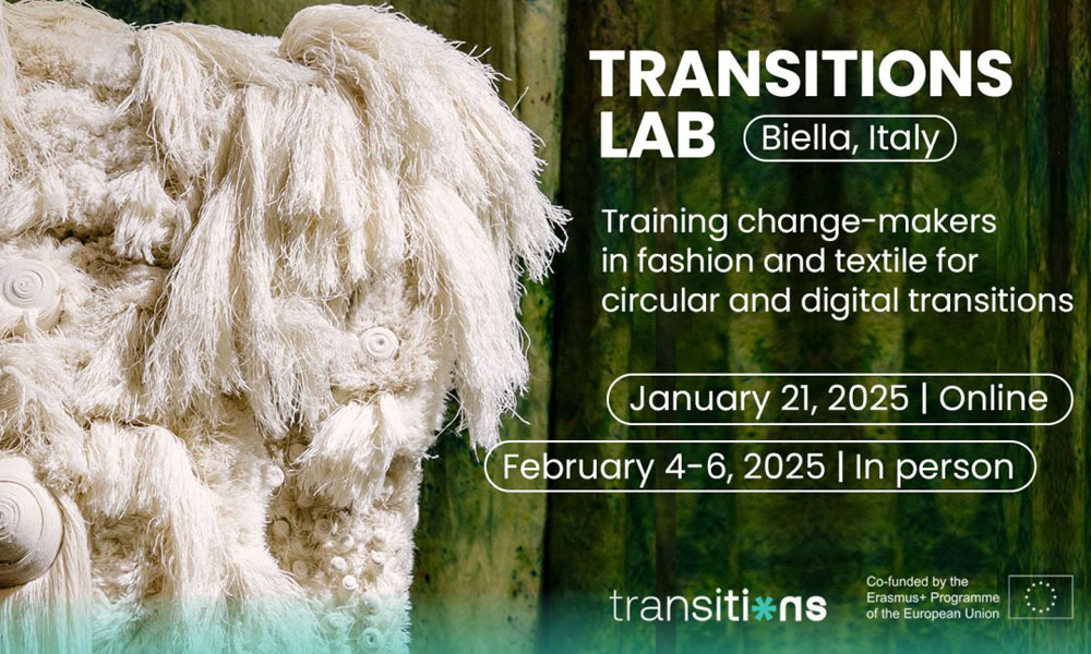 Po.in.tex (polo di innovazione tessile gestito da Città Studi Biella), all’interno del progetto europeo Transition di cui è partner, promuove l’avvio del Transitions Lab (T-LAB) e Transnational Transitions Conference. Transitions Lab (T-LAB) è un programma innovativo pensato per la formazione di professionisti, aziende, studenti universitari e partecipanti alla formazione professionale nel settore tessile e della moda: si svolgerà a Biella a Città Studi con una sessione online prevista per il 21 gennaio 2025 e un evento in presenza dal 4 al 6 febbraio 2025. Questo programma intensivo di quattro giorni si concentrerà su temi cruciali come la sostenibilità, l’economia circolare, il design rigenerativo e i modelli di business sostenibili.